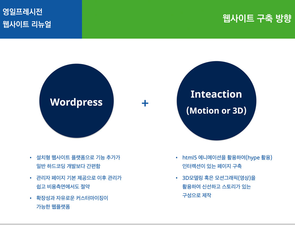 서울시 금천구에 소재한 방열소재, LED 제조업체 영일프레시젼의 웹사이트 리뉴얼 작업 입니다. 기존의 플래시로 제작되었던 낡은 홈페이지를 워드프레스를 활용하여 반응형으로 제작하였습니다.